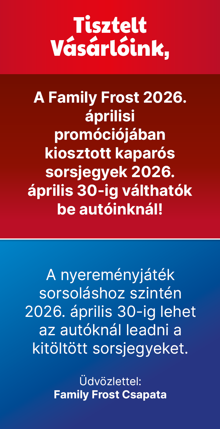 Akár otthon vásárolnál, akár házhoz szállítással, minden esetben személyesen szolgálunk ki udvarias és felkészült Family Frost eladóinkon keresztül.
